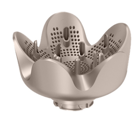 Este difusor distribuye el aire suavemente para mantener la forma natural del cabello mientras aporta volumen y definición. Ideal para crear un look natural, con movimiento y sin daño. Se coloca fácilmente en tu Air Styler Ion 8 como un accesorio adicional.
