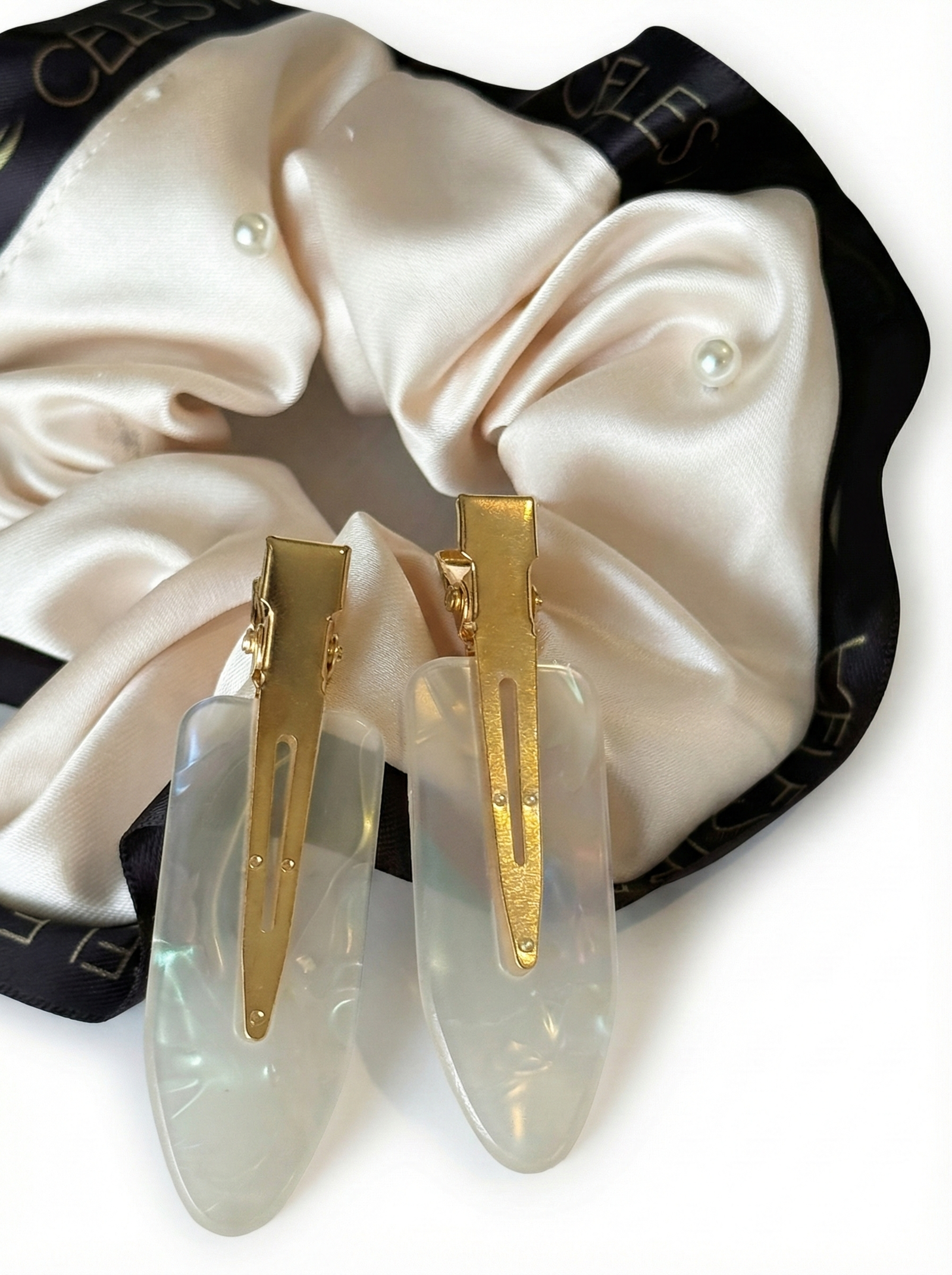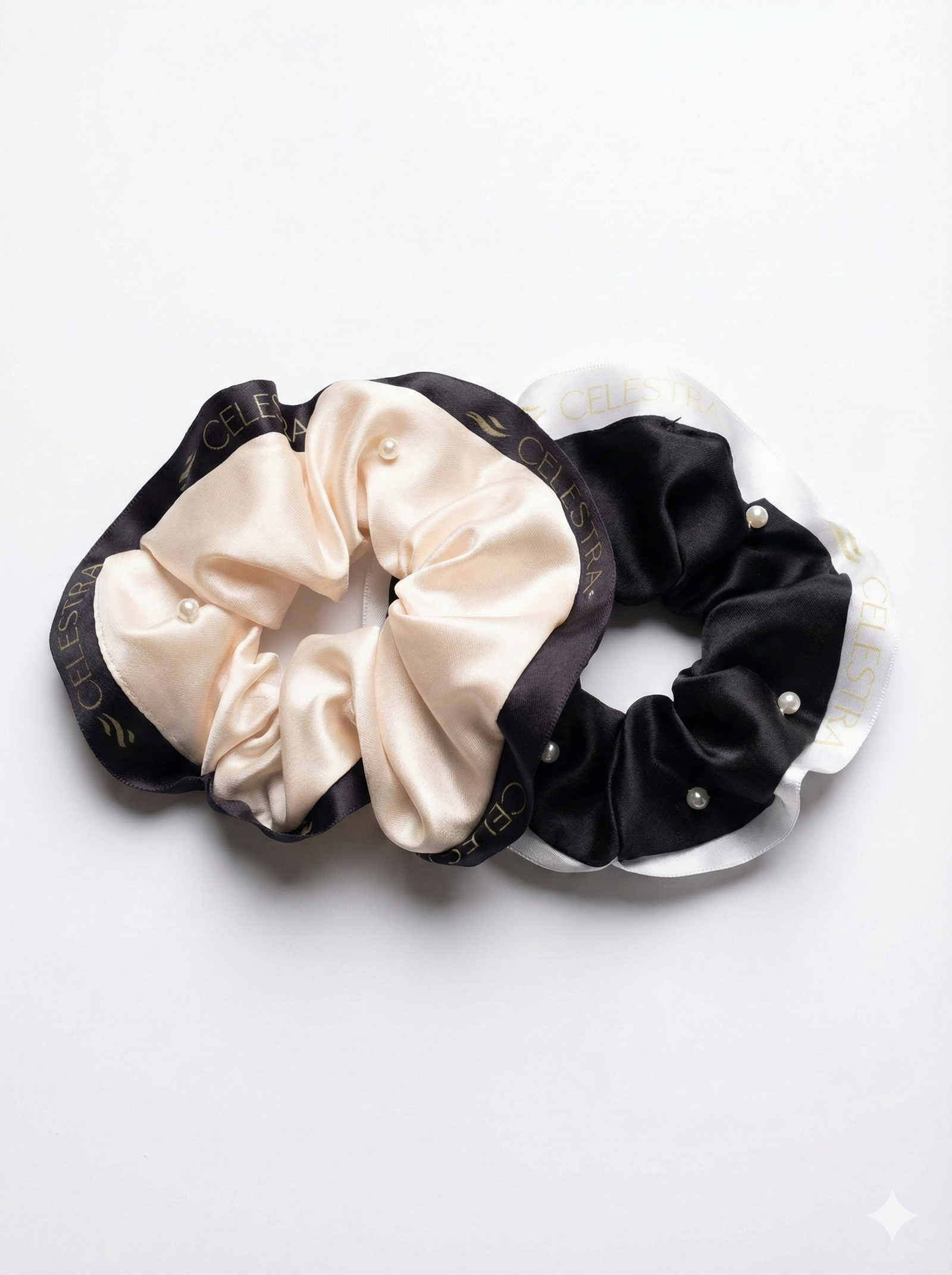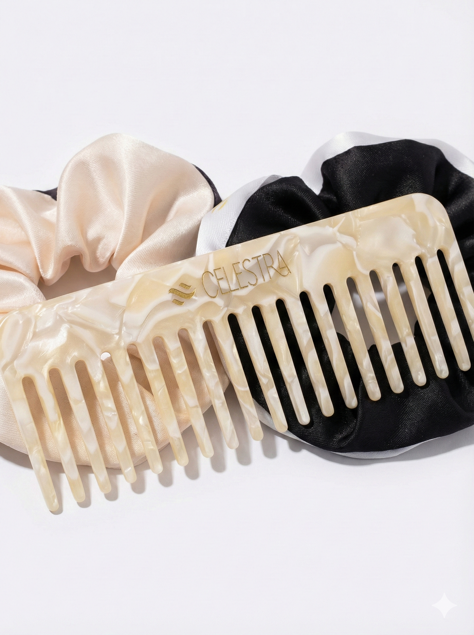 • 2 scrunchies suaves: no marcan ni quiebran el cabello